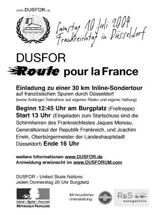 Anlässlich des 4.ten Frankreich-Tages in Düsseldorf wird am Samstag 10. Juli 2004 eine Sonder-Tour stattfinden unter dem Motto "DUSFOR - Roule pour la France".