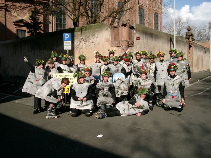Karneval heißt in Frankfurt "Fasching". Macht nix, als internationale Eingreiftruppe war DUSFOR natürlich auch hier vor Ort. Die befreundeten Tuesday Night Skaters (TNS) bekamen bei ihrem Umzug nicht nur personelle Unterstützung von DUSFOR, sondern kamen auch in den Genuss der Düsseldorfer Feldverpflegung: Das mitgebrachte Faß Altbier spülte kühle Abwechslung in Frankfurter Äbbelwoi Kehlen.