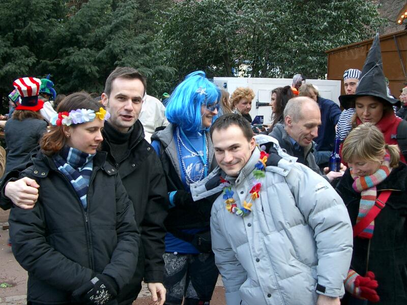 Am Schauplatz Mainz war das DUSFOR Kontingent undercover in ortsüblicher Uniform unterwegs (siehe Bild). Den Naturgewalten in Form von Schneetreiben, Konfettiregen, Pferdeäpfeln, etc. wurde souverän getrotzt. Apropos Trotz. Trotz der logistischen Schwierigkeiten, bezüglich der Versorgung mit Grundnahrungsmitteln (z.B. Altbier ;-), konnte DUSFOR in der Stadt Mainz den rheinischen Frohsinn sinnvoll verbreiten. Kein Wunder, waren doch ausgesuchte Kräfte am Werk ;-)