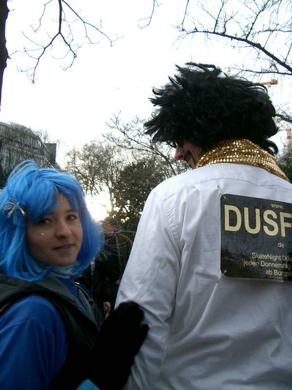 Die Kombination von mehreren DUSFORistas in Zivil und 2 Inlineskatenden Humorbeauftragten konnte der Zivilbevölkerung in DUS trotz Kamelle-Regens ein umfassendes Unsicherheisgefühl vermitteln.